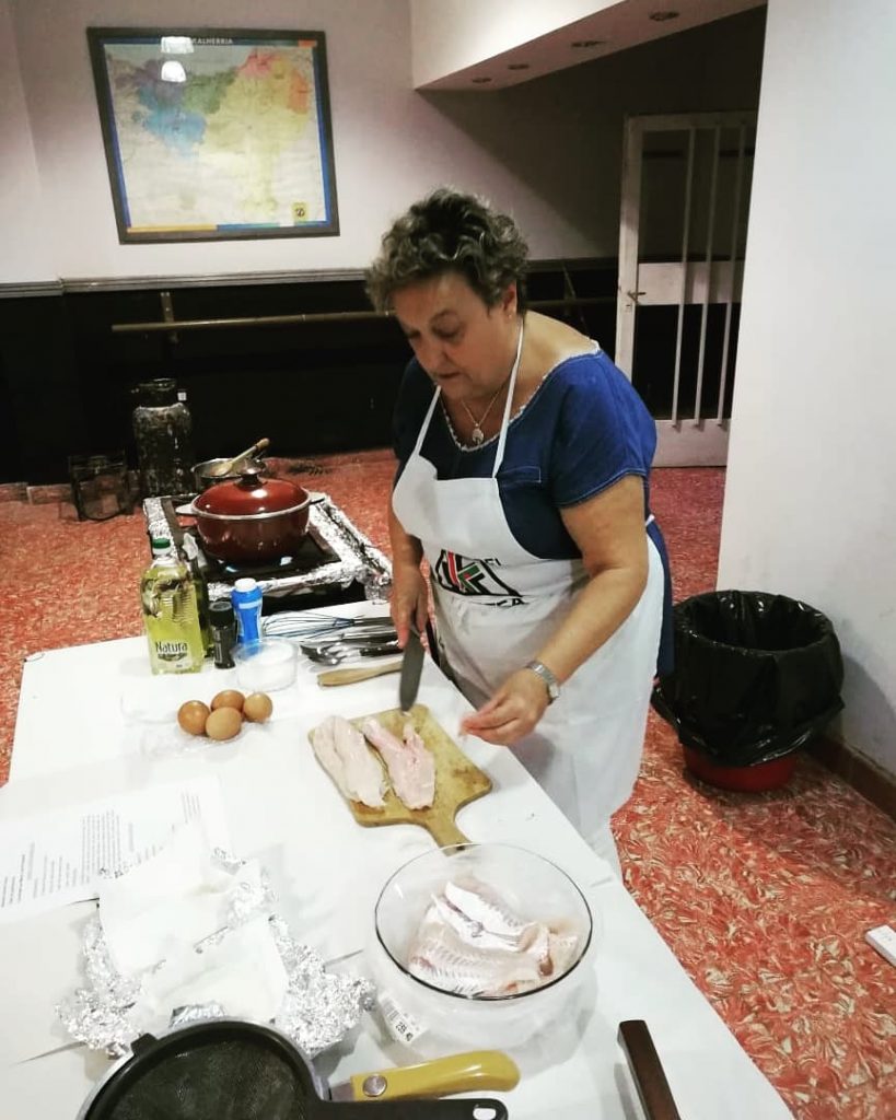 Muy aplaudida, entretenida y útil resultó la clase dictada por la querida María Luisa Ormazabal, quien es oriunda de Euskadi (vive la mitad del año allí y la otra mitad en Argentina). Durante la oportunidad, los participantes elaboraron un delicioso menú, que consistió en pudín, croquetas y huevos rellenos de merluza, y arroz con leche de postre. Tras ello, todos juntos disfrutaron de lo lindo saboreando lo preparado.